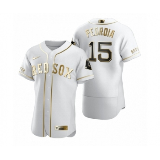 Men Boston Red Sox #15 Dustin Pedroia Nike White Authentic Golden Edition Jersey