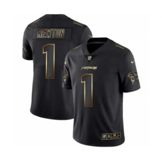Men Carolina Panthers #1 Cam Newton Black Golden Edition 2019 Vapor Untouchable Limited Jersey