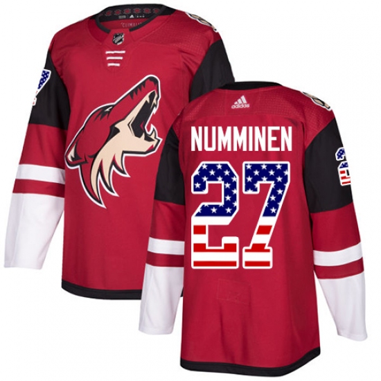 Home>NHL>Arizona Coyotes>Teppo Numminen>Men's Adidas Arizona Coyotes #27 Teppo Numminen Authentic Red USA Flag Fashion NHL Jersey