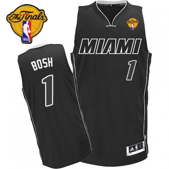 Men's Adidas Miami Heat #1 Chris Bosh Authentic Black/White Finals Patch NBA Jersey