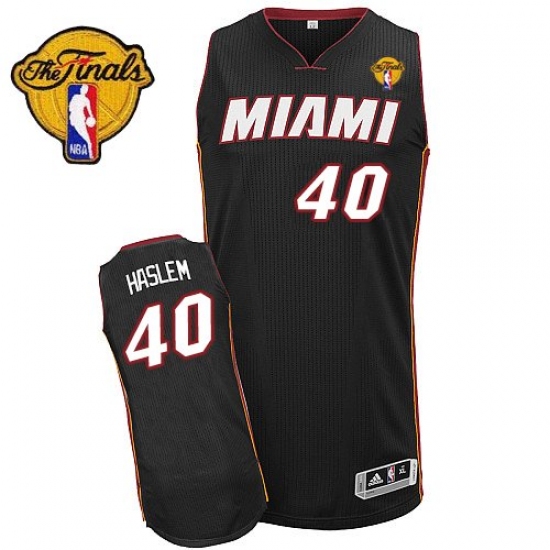 Men's Adidas Miami Heat #40 Udonis Haslem Authentic Black Road Finals Patch NBA Jersey