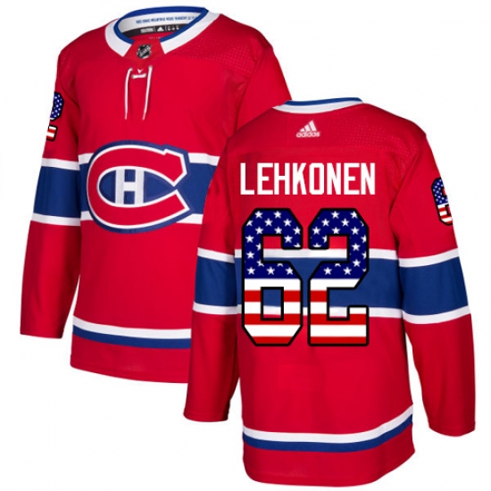 Home>NHL>Montreal Canadiens>Artturi Lehkonen>Men's Adidas Montreal Canadiens #62 Artturi Lehkonen Authentic Red USA Flag Fashion NHL Jersey