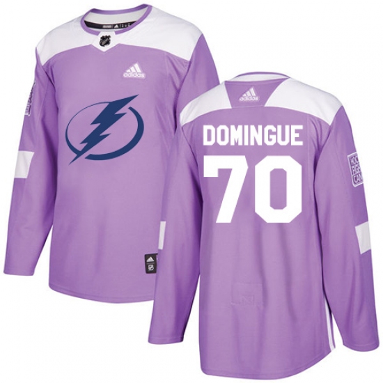>Men's Adidas Tampa Bay Lightning #70 Louis Domingue Authentic Purple Fights Cancer Practice NHL Jersey