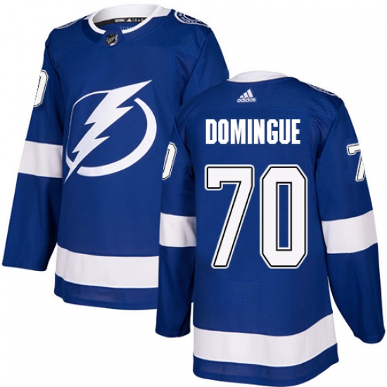 >Men's Adidas Tampa Bay Lightning #70 Louis Domingue Authentic Royal Blue Home NHL Jersey