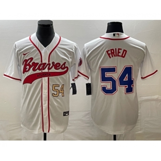 Men's Atlanta Braves #54 Max Fried Number White Cool Base Stitched Baseball Jersey