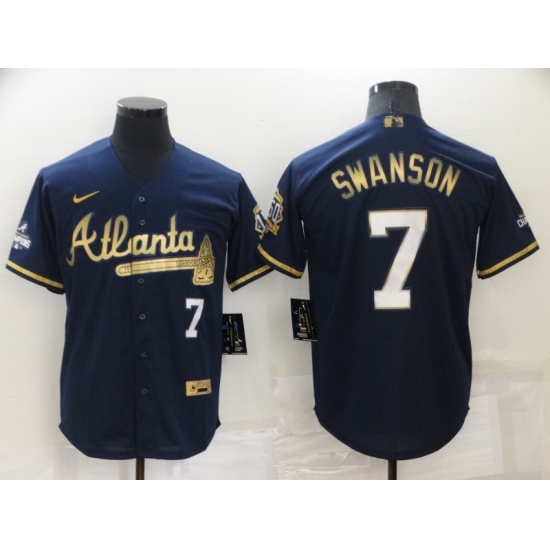 Men's Atlanta Braves #7 Dansby Swanson Navy 2022 Gold Program Authentic Player Jersey