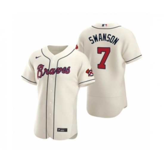 Men's Atlanta Braves #7 Dansby Swanson Nike Cream Authentic 2020 Alternate Jersey