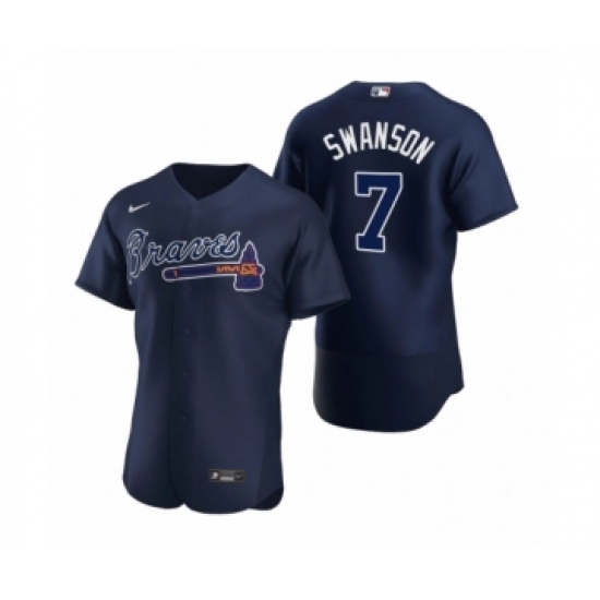 Men's Atlanta Braves #7 Dansby Swanson Nike Navy Authentic 2020 Alternate Jerseys