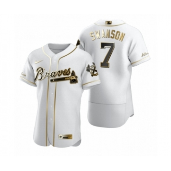 Men's Atlanta Braves #7 Dansby Swanson Nike White Authentic Golden Edition Jersey