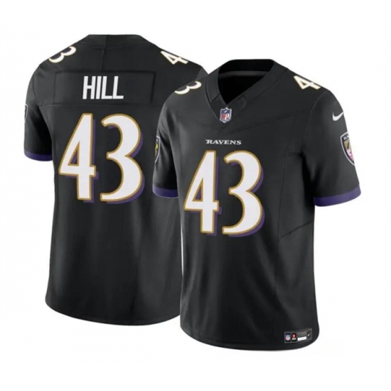 Men's Baltimore Ravens #43 Justice Hill Black 2023 F.U.S.E. Vapor Limited Football Stitched Jersey