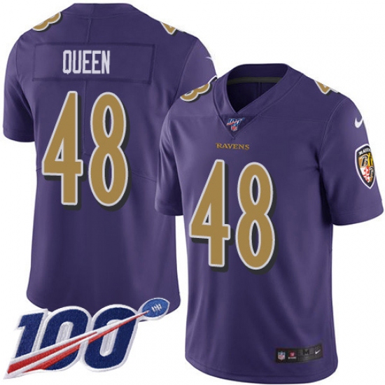 >Men's Baltimore Ravens #48 Patrick Queen Purple Stitched NFL Limited Rush 100th Season Jersey