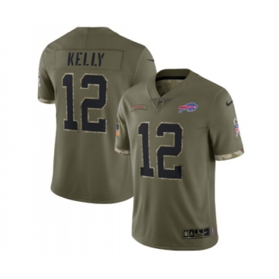 >Men's Buffalo Bills #12 Jim Kelly 2022 Olive Salute To Service Limited Stitched Jersey