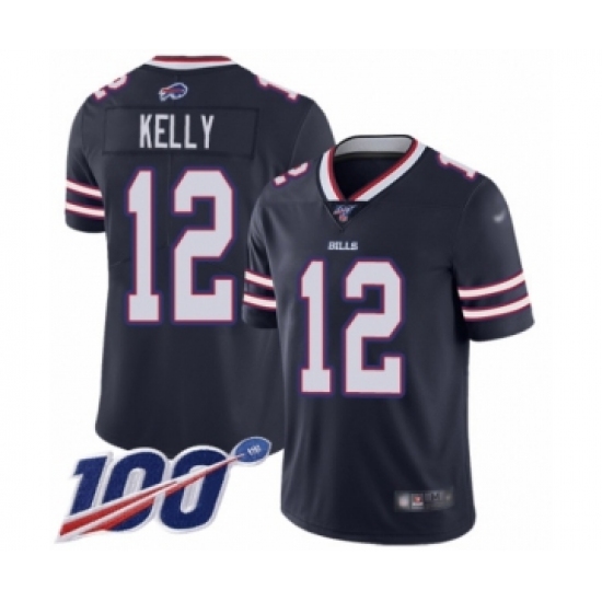 >Men's Buffalo Bills #12 Jim Kelly Limited Navy Blue Inverted Legend 100th Season Football Jersey