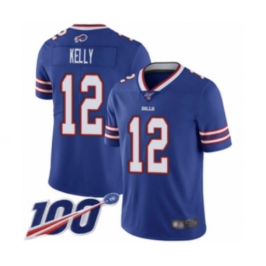 Men's Buffalo Bills #12 Jim Kelly Royal Blue Team Color Vapor Untouchable Limited Player 100th Season Football Jersey