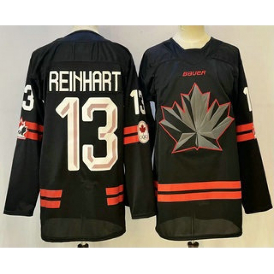 >Men's Canada Hockey #13 Sam Reinhart Black Stitched Jersey