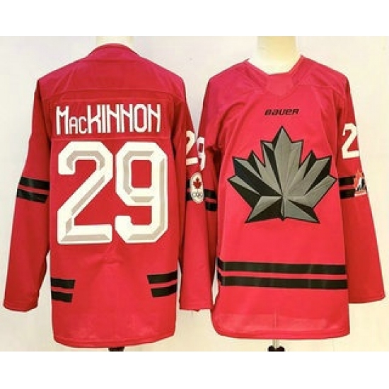 >Men's Canada Hockey #29 Nathan MacKinnon Red Stitched Jersey