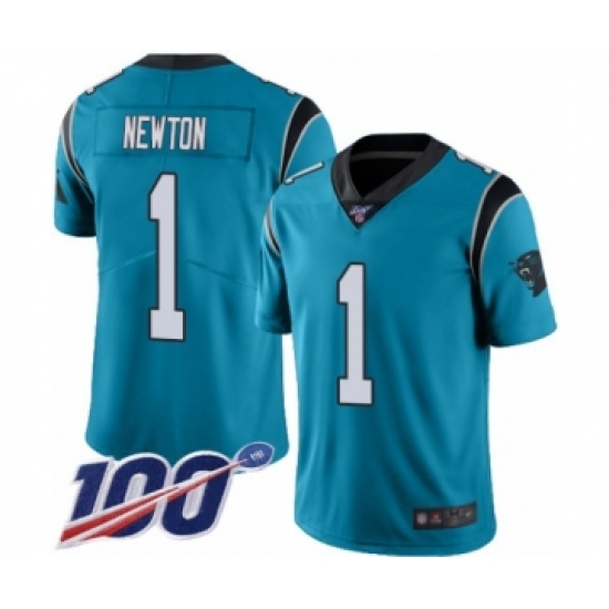 Men's Carolina Panthers #1 Cam Newton Limited Blue Rush Vapor Untouchable 100th Season Football Jersey