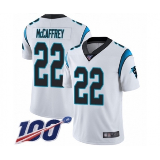 Men's Carolina Panthers #22 Christian McCaffrey White Vapor Untouchable Limited Player 100th Season Football Jersey