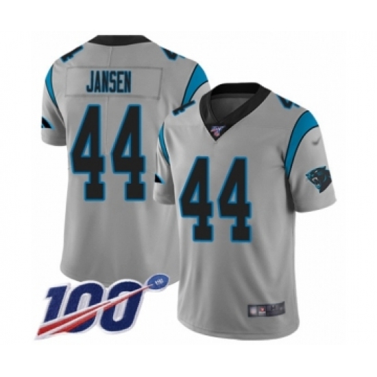 >Men's Carolina Panthers #44 J.J. Jansen Silver Inverted Legend Limited 100th Season Football Jersey