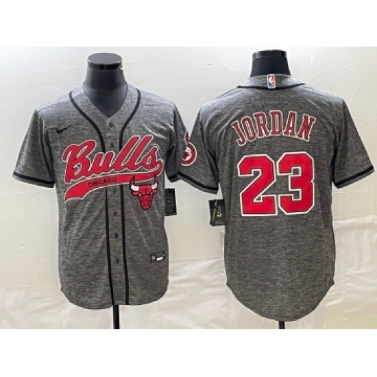 Men's Chicago Bulls #23 Michael Jordan Grey Gridiron Cool Base Stitched Baseball Jersey