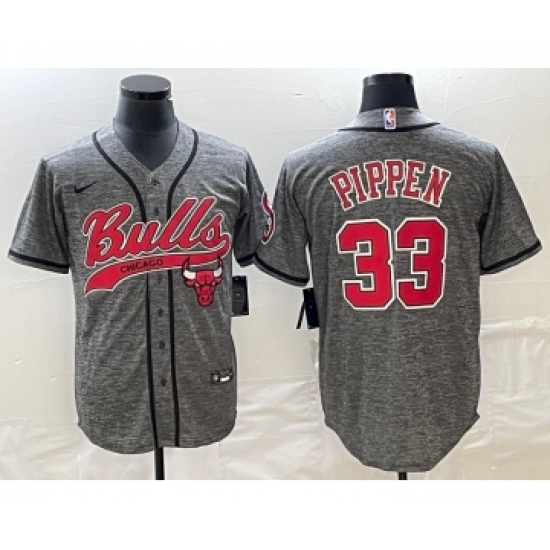 Men's Chicago Bulls #33 Scottie Pippen Grey Gridiron Cool Base Stitched Baseball Jersey