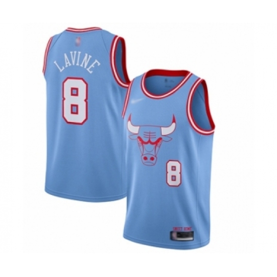 >Men's Chicago Bulls #8 Zach LaVine Swingman Blue Basketball Jersey - 2019 20 City Edition
