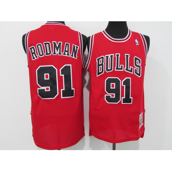 Men's Chicago Bulls #91 Dennis Rodman Red Short Sleeved AU Throwback Jersey
