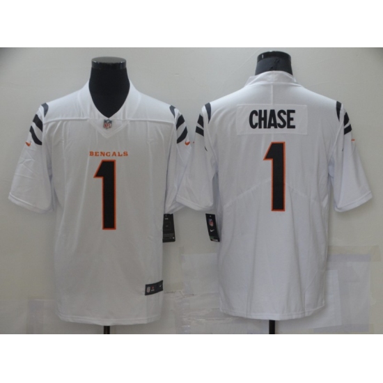 >Men's Cincinnati Bengals #1 Ja'Marr Chase Nike White 2021 NFL Draft First Round Pick Limited Jersey