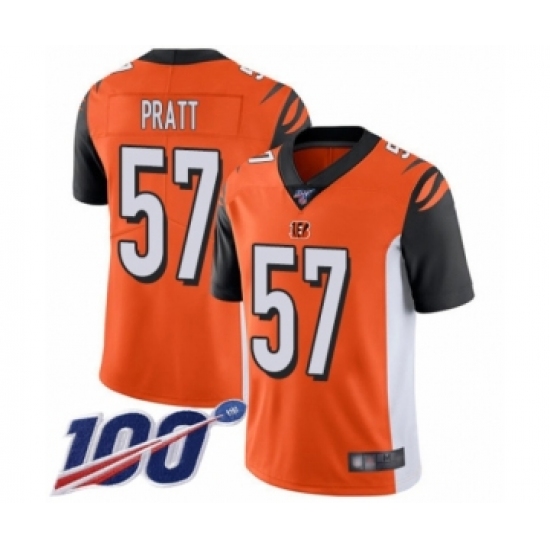 Men's Cincinnati Bengals #57 Germaine Pratt Orange Alternate Vapor Untouchable Limited Player 100th Season Football Jersey