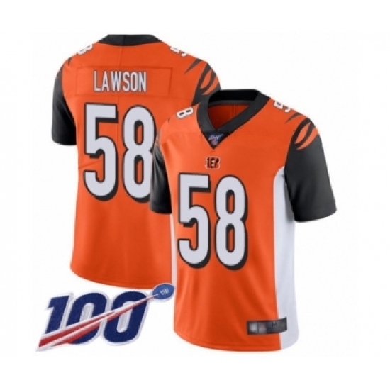 Men's Cincinnati Bengals #58 Carl Lawson Orange Alternate Vapor Untouchable Limited Player 100th Season Football Jersey