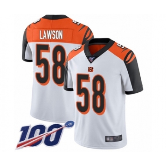 >Men's Cincinnati Bengals #58 Carl Lawson White Vapor Untouchable Limited Player 100th Season Football Jersey