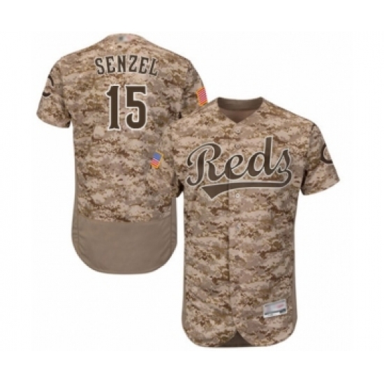>Men's Cincinnati Reds #15 Nick Senzel Authentic Camo Alternate Cool Base Baseball Jersey