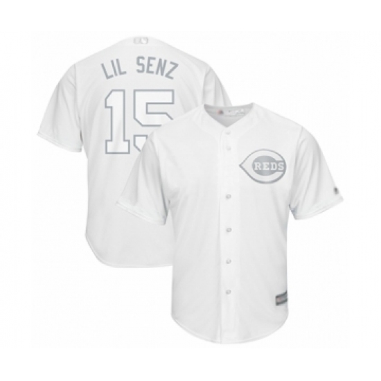 >Men's Cincinnati Reds #15 Nick Senzel Lil Senz Authentic White 2019 Players Weekend Baseball Jersey