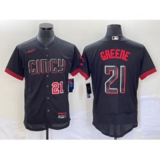 Men's Cincinnati Reds #21 Hunter Greene Black 2023 City Connect Flex Base Stitched Jersey