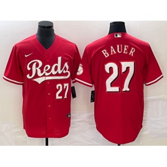Men's Cincinnati Reds #27 Trevor Bauer Number Red Stitched MLB Cool Base Nike Jersey