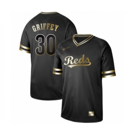 Men's Cincinnati Reds #30 Ken Griffey Authentic Black Gold Fashion Baseball Jersey