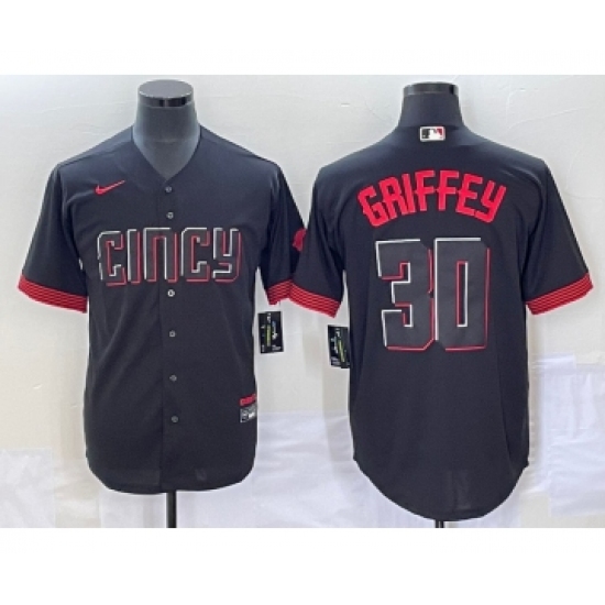 Men's Cincinnati Reds #30 Ken Griffey Jr Black 2023 City Connect Cool Base Stitched Jersey1