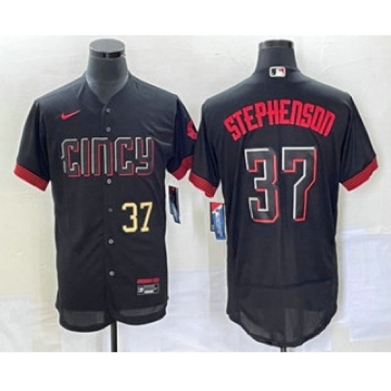 Men's Cincinnati Reds #37 Tyler Stephenson Black 2023 City Connect Flex Base Stitched Jersey 1