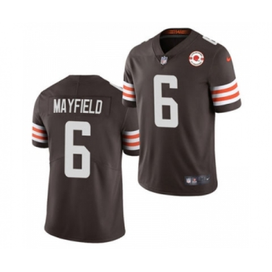 Men's Cleveland Browns #6 Baker Mayfield 2021 Brown 75th Anniversary Patch Vapor Untouchable Limited Jersey