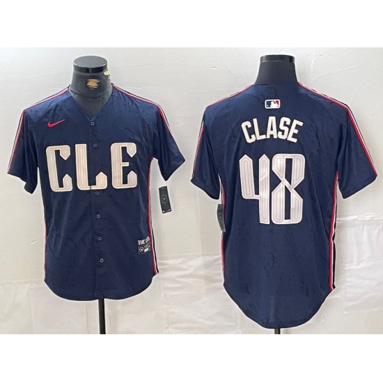 Men's Cleveland Guardians #48 Emmanuel Clase Navy 2024 City Connect Limited Stitched Jersey