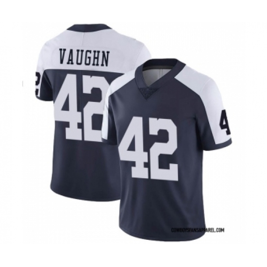 >Men's Dallas Cowboys #42 Deuce Vaughn Navy Thanksgiving Vapor Limited Stitched Jersey