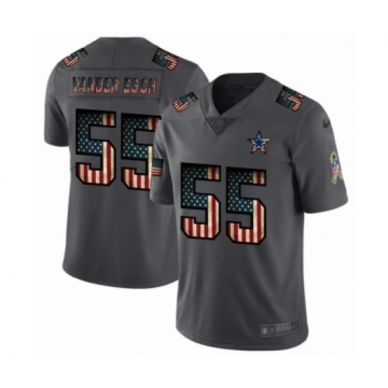 >Men's Dallas Cowboys #55 Leighton Vander Esch Limited Black USA Flag 2019 Salute To Service Football Jersey