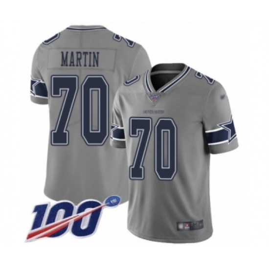 >Men's Dallas Cowboys #70 Zack Martin Limited Gray Inverted Legend 100th Season Football Jersey