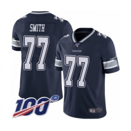 >Men's Dallas Cowboys #77 Tyron Smith Navy Blue Team Color Vapor Untouchable Limited Player 100th Season Football Jersey