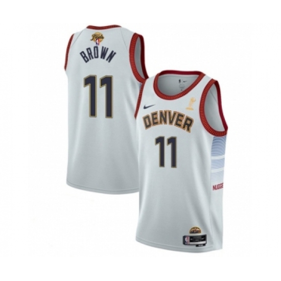 Men's Denver Nuggets #11 Bruce Brown White 2023 Finals Champions Icon Edition Stitched Basketball Jersey