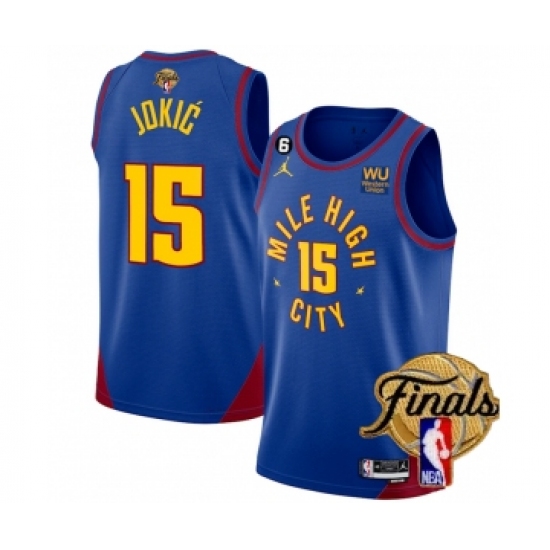 Men's Denver Nuggets #15 Nikola Jokic Blue 2023 Finals Statement Edition With NO.6 Stitched Basketball Jersey