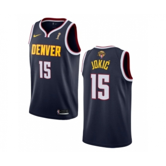 >Men's Denver Nuggets #15 Nikola Jokic Navy 2023 Finals Champions Icon Edition Stitched Basketball Jersey