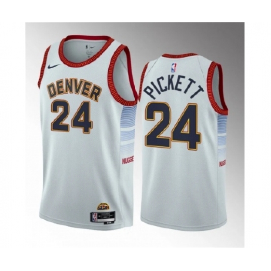 >Men's Denver Nuggets #24 Jalen Pickett White 2023 Draft Icon Edition Stitched Basketball Jersey