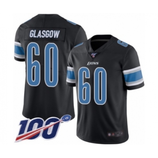 >Men's Detroit Lions #60 Graham Glasgow Limited Black Rush Vapor Untouchable 100th Season Football Jersey