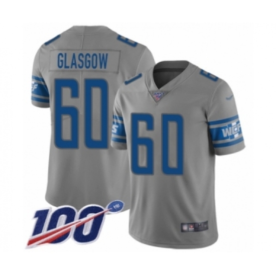 >Men's Detroit Lions #60 Graham Glasgow Limited Gray Inverted Legend 100th Season Football Jersey